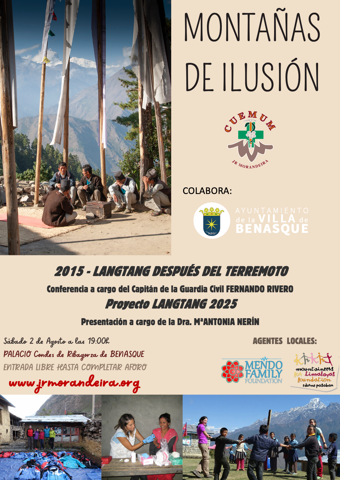 Al terminar, los que estén interesados en colaborar pueden dejar sus donaciones en efectivo o hacer una transferencia a la cuenta de la Asociación de Medicina de Montaña José Ramón Morandeira o hacer una aportación al reto que hemos creado en la plataforma MI GRANO DE ARENA. Estarán a la venta las camisetas técnicas de MONTAÑAS DE ILUSIÓN.
